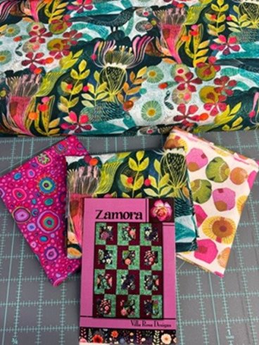 We have put together some fabrics from Colori and Kaffe Fassett with a Villa Rosa Pattern