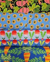 Jane Sassaman's newest line "Vegetable Patch" is now in stock. Shop for the fat quarter bundle HERE